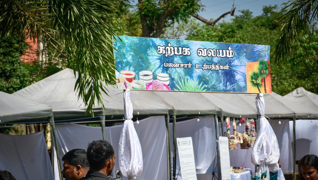 A special thematic focus of the exhibition was the Palmyrah (palm tree), a cultural and economic symbol of the Northern and Eastern regions of Sri Lanka. Despite its deep-rooted significance in local lifestyles, food traditions, cultural practices, and entrepreneurial history, the Palmyrah tree’s commercial value and export potential remain vastly underutilised. Modern technological shifts and changing market demands have contributed to a decline in its economic exploitation.